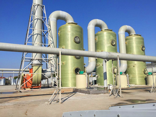 市場上玻璃鋼噴淋塔指的是使用玻璃鋼材料制作而成,通過噴淋的方式使吸收液與廢氣進(jìn)行接觸,達(dá)到凈化廢氣中有害成分目的的塔體。下圖就是一些玻璃鋼噴淋塔安裝效果圖。