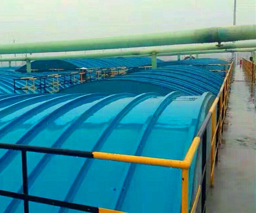 安裝在污水池上,用來收集污水揮發時產生的廢氣,然后將廢氣集中通過管道排至制定的處理容器中。經過凈化處理之后,在玻璃鋼離心風機的作用下再排至大氣環境中。