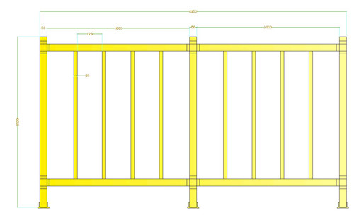b、根據(jù)護(hù)欄的規(guī)格型號,將對于的型材類產(chǎn)品進(jìn)行切割、打磨等工作。以1m寬,1m高的護(hù)欄為例,首先將橫撐件和豎撐配件先切割成1m的尺寸,在將扶手按照同樣的方法切割;