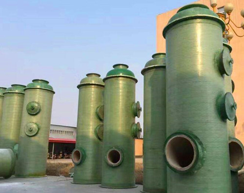 吐過(guò)罐體表面光滑,一次性成型的塔體就是通過(guò)纏繞工藝制作而成的纏繞塔;而分段連接的塔體使用的就是手糊工藝制作的手糊塔。手糊制作的廢氣塔可以清洗看出塔體之間連接的法蘭,而纏繞工藝制作的廢氣塔表面很光滑,只有后期加工的一些觀察口、法蘭。