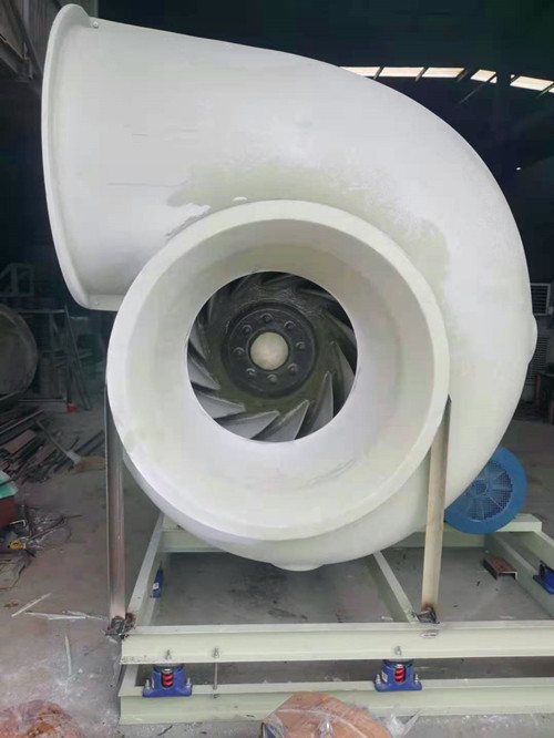 本文展示的12C玻璃鋼離心風機屬于大型號的風機,每小時風機的風量值可到70000左右??纱钆涫褂玫碾姍C功率有37kw、45kw、55kw、75kw這四種。風機的轉速在1000rpm左右,風量值隨著電機的功率增加也隨之增加。下面是一些本公司生產的12C玻璃鋼離心風機的外觀圖展示。