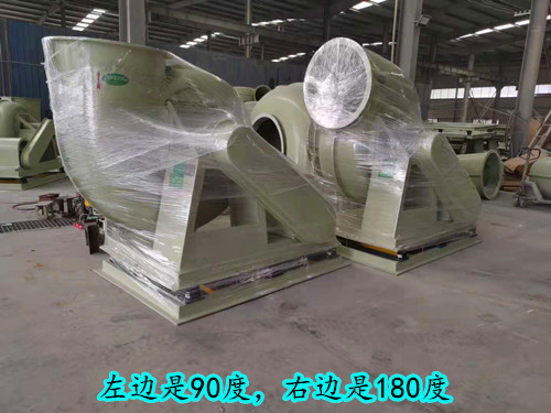 在風(fēng)機(jī)的所有方向中,90°和180°是兩種使用最多的方向。其中90°的風(fēng)機(jī)出風(fēng)口向上,180°的風(fēng)機(jī)出風(fēng)口平吹。在章節(jié)玻璃鋼離心風(fēng)機(jī)方向中介紹過(guò),風(fēng)機(jī)的方向是以風(fēng)機(jī)中心點(diǎn)作水平線(xiàn),風(fēng)機(jī)出風(fēng)口與水平線(xiàn)的角度就是風(fēng)機(jī)的角度。從軸承箱側(cè)或皮帶輪側(cè)正視,風(fēng)機(jī)的選擇方向?yàn)轫槙r(shí)針,則風(fēng)機(jī)為右旋,逆時(shí)針則風(fēng)機(jī)為左旋。下面是90°與180°玻璃鋼離心風(fēng)機(jī)圖展示。
