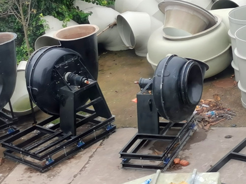 如本公司生產就是玻璃鋼材質的離心風機,主要在工業廢氣凈化中使用。因為工業生產中會產生很多帶有腐蝕性成分的氣體,故而選擇防腐性能非常優秀的玻璃鋼材料來制作風機。